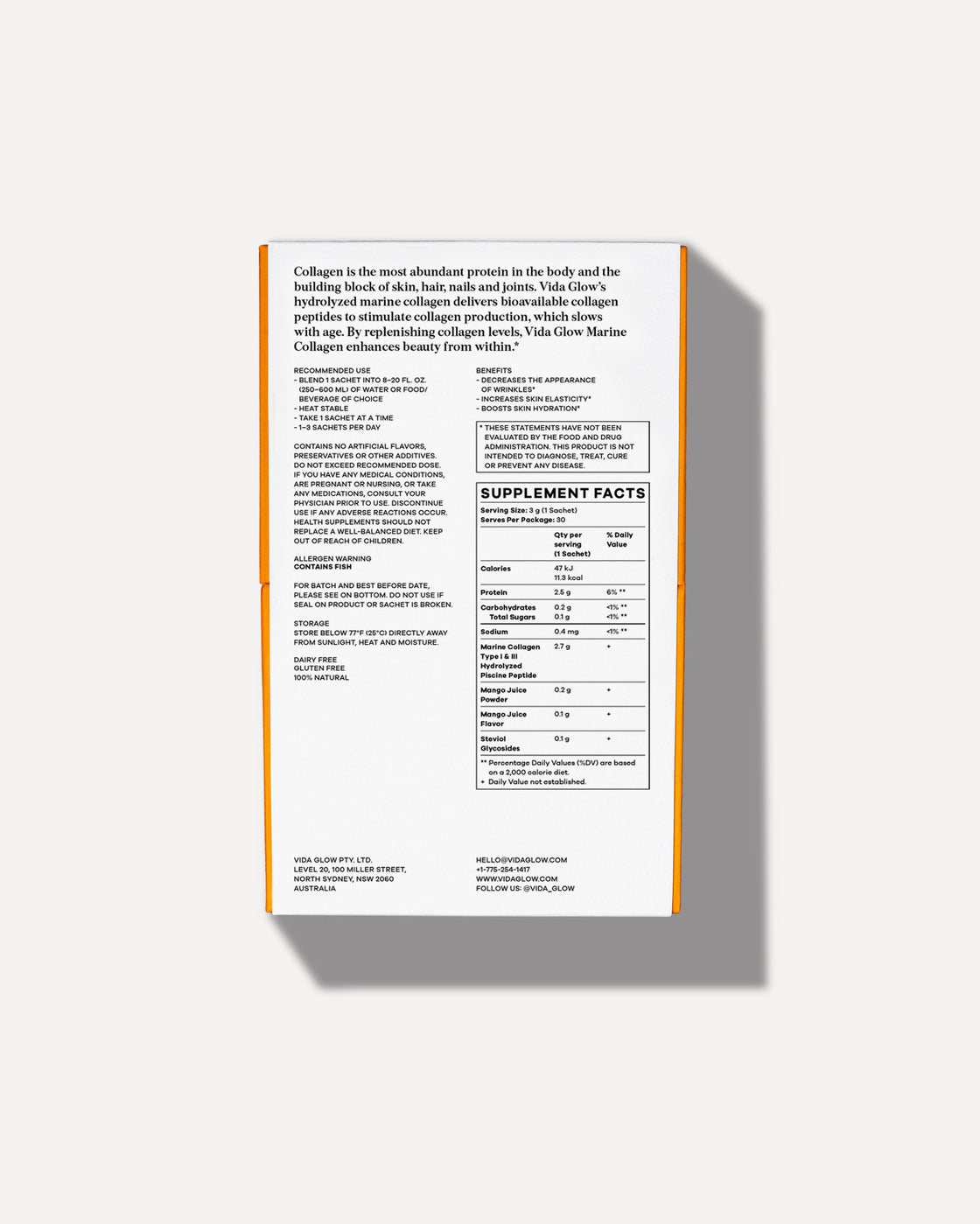 Natural marine collagen, Mango juice powder, Mango flavour, Steviol
